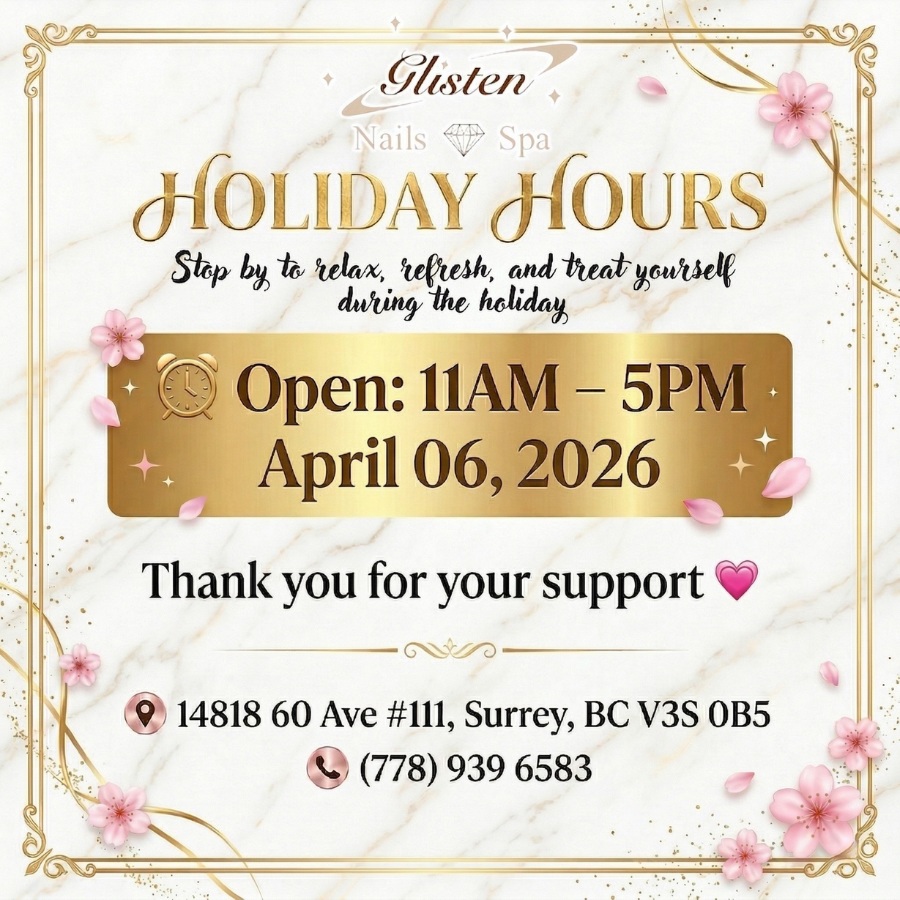 Located conveniently in South Newton, Surrey, BC V3S 1R9, with an airy, clean space with a friendly and relaxing atmosphere, our nail salon would bring you the most comfortable moment.